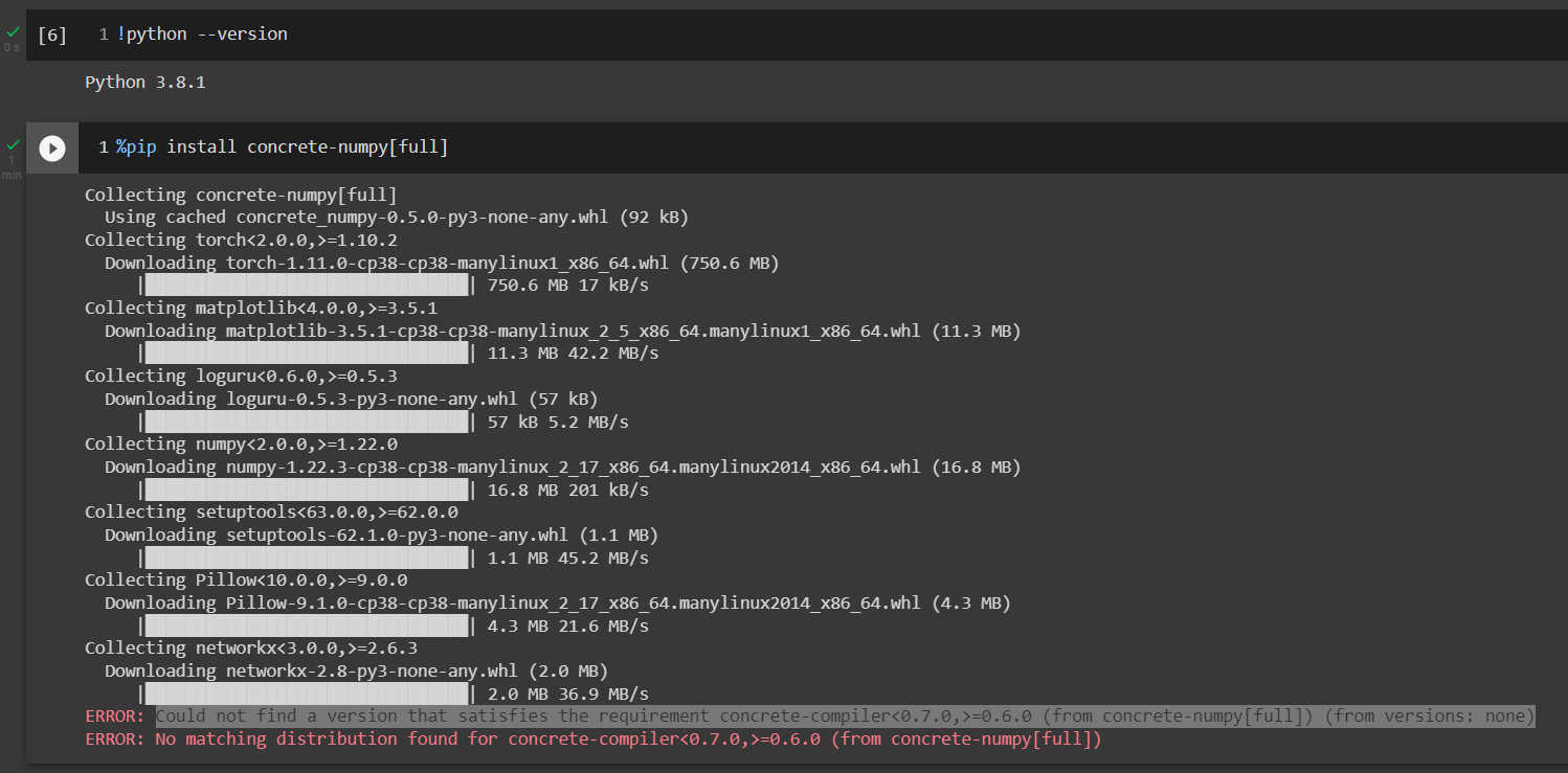 Thanks for your answer; I tell you that I update python to 3.8.1 in google colab, and I try to install concrete-numpy, but I don’t get install it