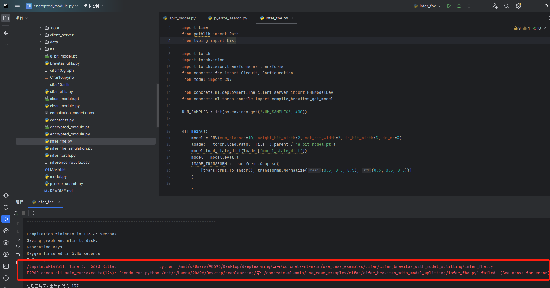 when i want to compile infer_fhe.py. something wrong, but i dont know how to solve? can anyone give me some adivce?