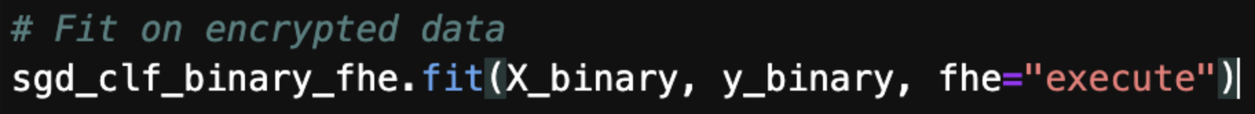 Also, based on my understanding with fhe="execute" parameter the function while training first generates the key, encrypts the data and then train the model on encrypted data. I wanted to know whether instead of doing key generation and encryption in fit function, Can we decouple it in such a way that the fit function directly takes in encrypted data and trains the model and build fhe_circuit .