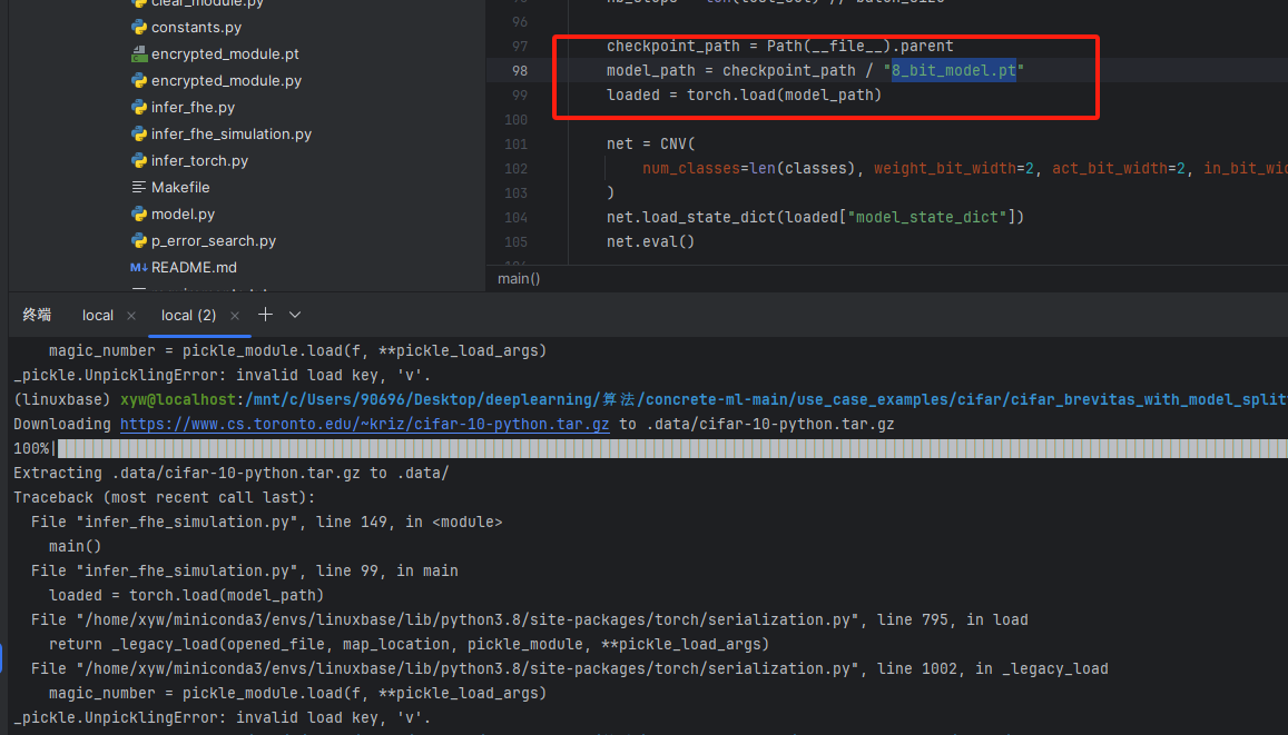 I want to learn about fhe work on cifar. But when i run program i cant find where to download file like’8_bit_model.pt’ , ‘clear_module.pt’ ,‘encrypted module.py’. can anybody tell me how to solve?
